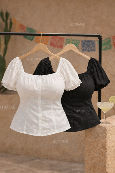 Fabric:SELF:100% COTTON EMBROIDERED EYELET VOILE (P4188S)CONTRAST: 100% COTTON VOILE